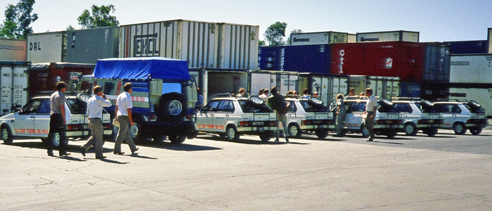 Les containers sont alignés sur le quai du port. De leurs ventres ouverts sortent nos voitures. Tout est là: grilles de désensablement,…