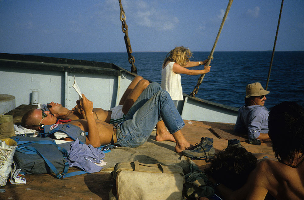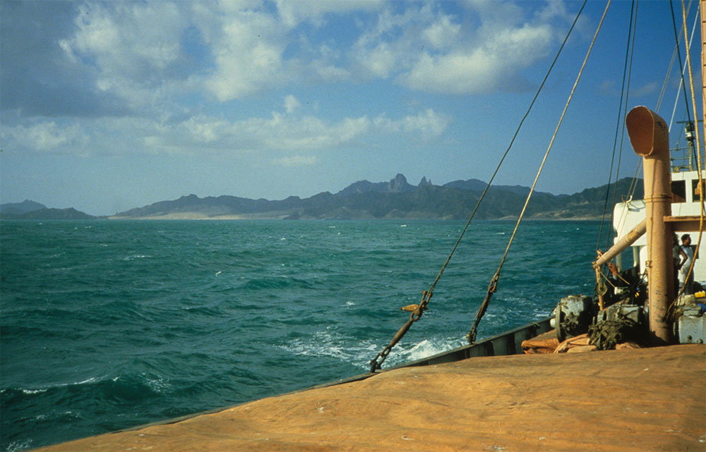 Des filets usés soulèvent nos voitures pour les poser dans la cale d’un vieux rafiot en partance pour Aden.