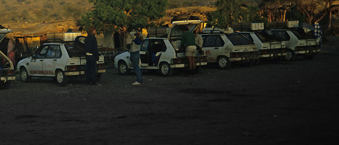Nos voitures, capots levés, parsèment le désert, immobiles, perdues dans l’immensité.
