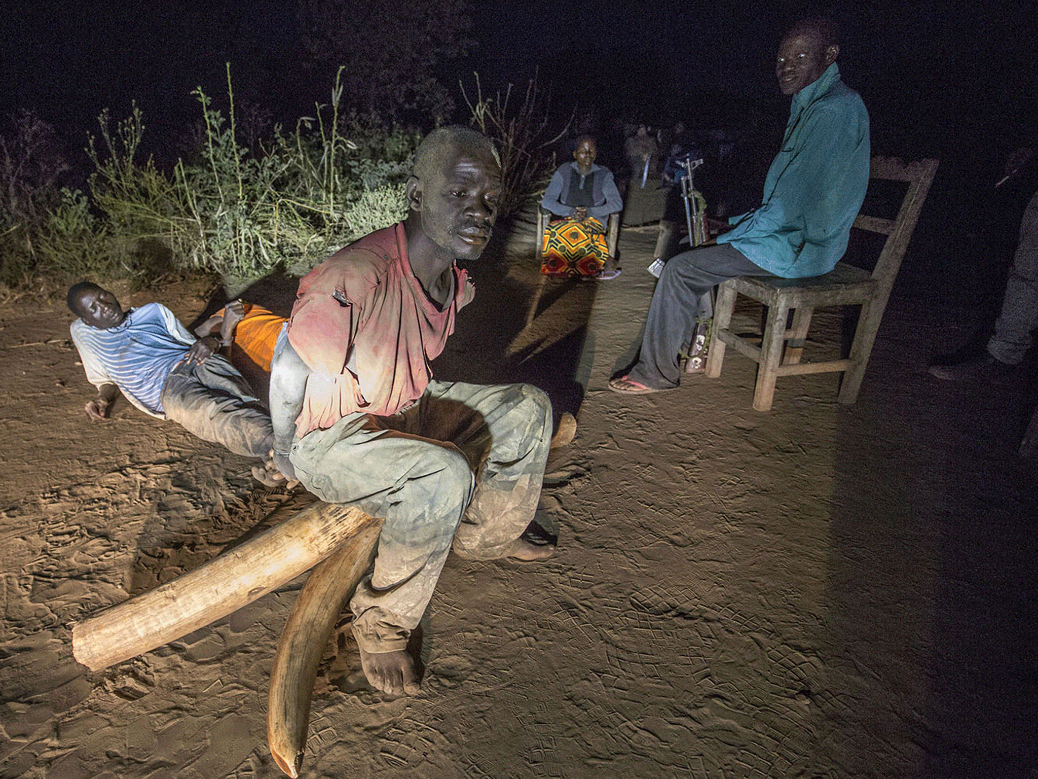 La nuit tombe, raconte Roland, nous avançons en file indienne dans le bush. Partout, il y a des squelettes d’éléphants, des têtes…