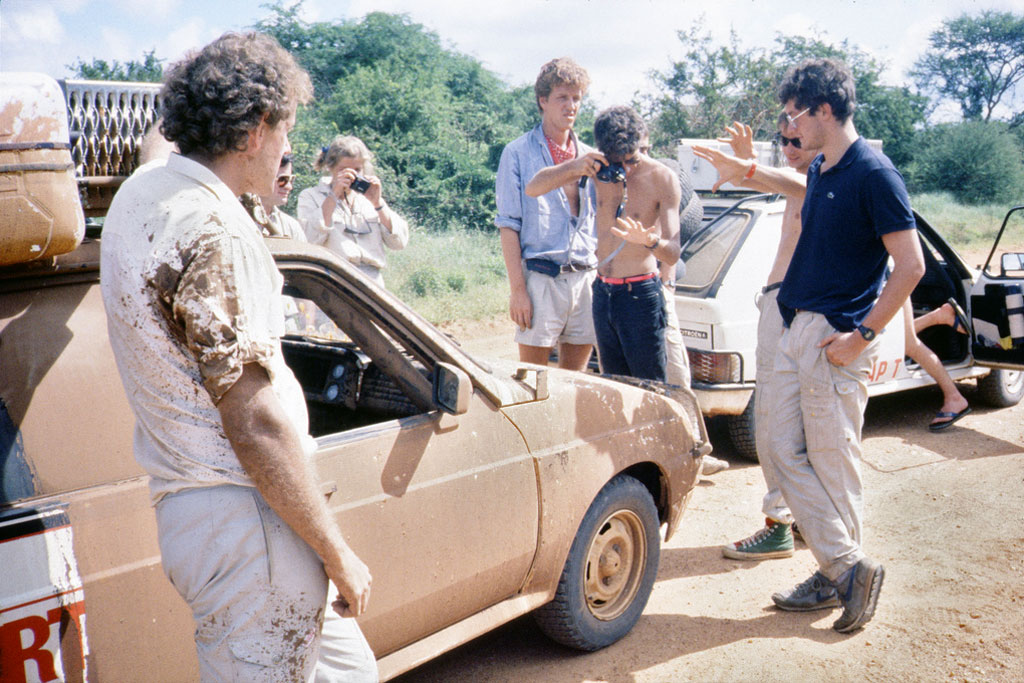 La piste est de mauvaise qualité. A chaque instant, nous risquons de cabosser les jantes. Hier, Benoît a, une nouvelle fois, préparé la voiture. Il l’a lavée, essuyée, dedans, sur le toit, le capot, le coffre, sans oublier les rétroviseurs, les vitres et le treuil. Il est passé sous les sièges, entre le levier de vitesses et le frein à main, derrière l’extincteur. Comme il fait chaud, nous avons baissé les vitres. La brousse est en fête. Les oiseaux chantent, le ciel est bleu. Une grosse flaque qui traverse la route m’oblige à freiner. Alors que je m’apprête à la passer au ralenti, en première, à ce moment-là, j’aperçois dans le rétrovise