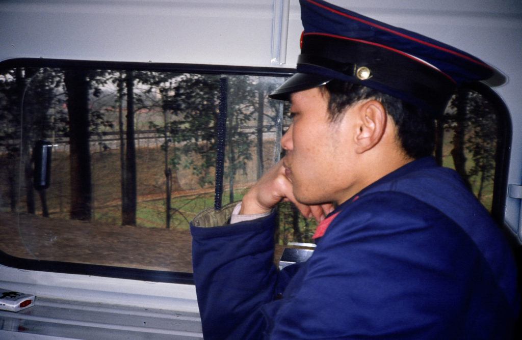 A l’ordre du jour, d’abord le traditionnel mot d’accueil : « Bienvenue dans la province de Henan. » Jusque-là, ça va. Puis je suis obligé de reprendre le dossier de zéro : « Nous faisons une émission de télévision; nous avons encore des images à prendre, la liaison téléphonique à préparer à l’étape. Il faut ac-cé-lé-rer ! » La réponse, connue d’avance, évoque la sécurité, notre protection, l’accident d’Alain, la bonne marche du convoi et le respect des autorités. Tous ces griefs se noient une heure plus tard lorsque les vapeurs de l’alcool de riz ont sensiblement coloré les joues du responsable de la sécurité qui disparaît derrière ses verres.