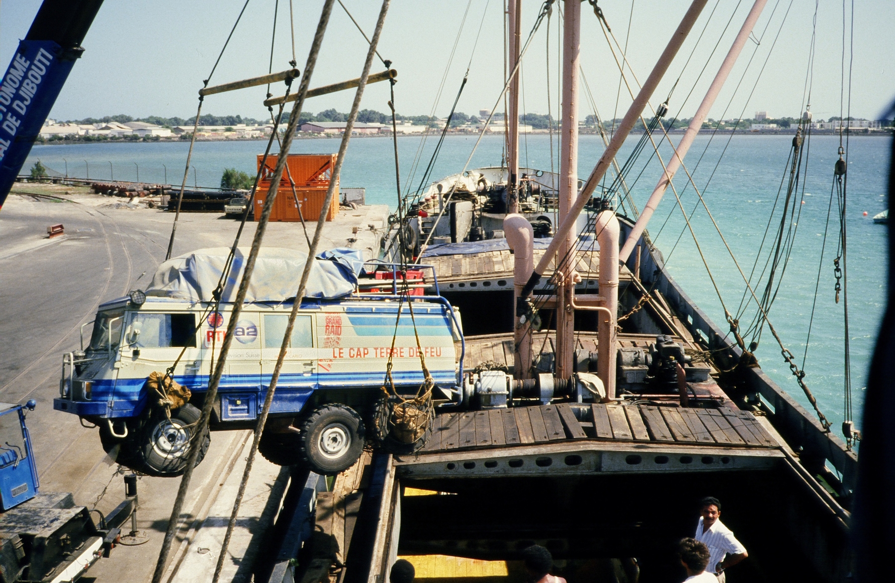 Bref, nous sommes les bienvenus… dans un mois à peu près, alors que le Raid est embarqué sur le « Randa » ! Pierre ne comprend plus rien : « Mais… ils sont tous sur un bateau et ils arrivent demain ! » L’homme s’énerve et conclut :