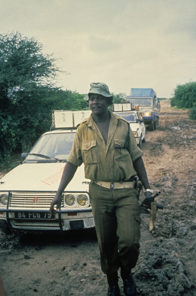 Le paysage est devenu très sauvage. Nous avons vraiment l’impres­sion d’atteindre le bout du monde. La piste, les arbres secs, les passages étroits dans lesquels les militaires redoublent d’attention. Il n’y a plus rien. Juste notre serpentin qui se déroule de façon anachronique, notre défi qui construit des situations, provoque des réactions, modifie le cours tranquille de l’Eternité qui passe, sans avoir rien demandé à personne. Notre étonnement, leur étonnement se croisent dans des regards fatigués, sans cesse différents, toujours tournés vers cette course qui s’annonce sans fin.