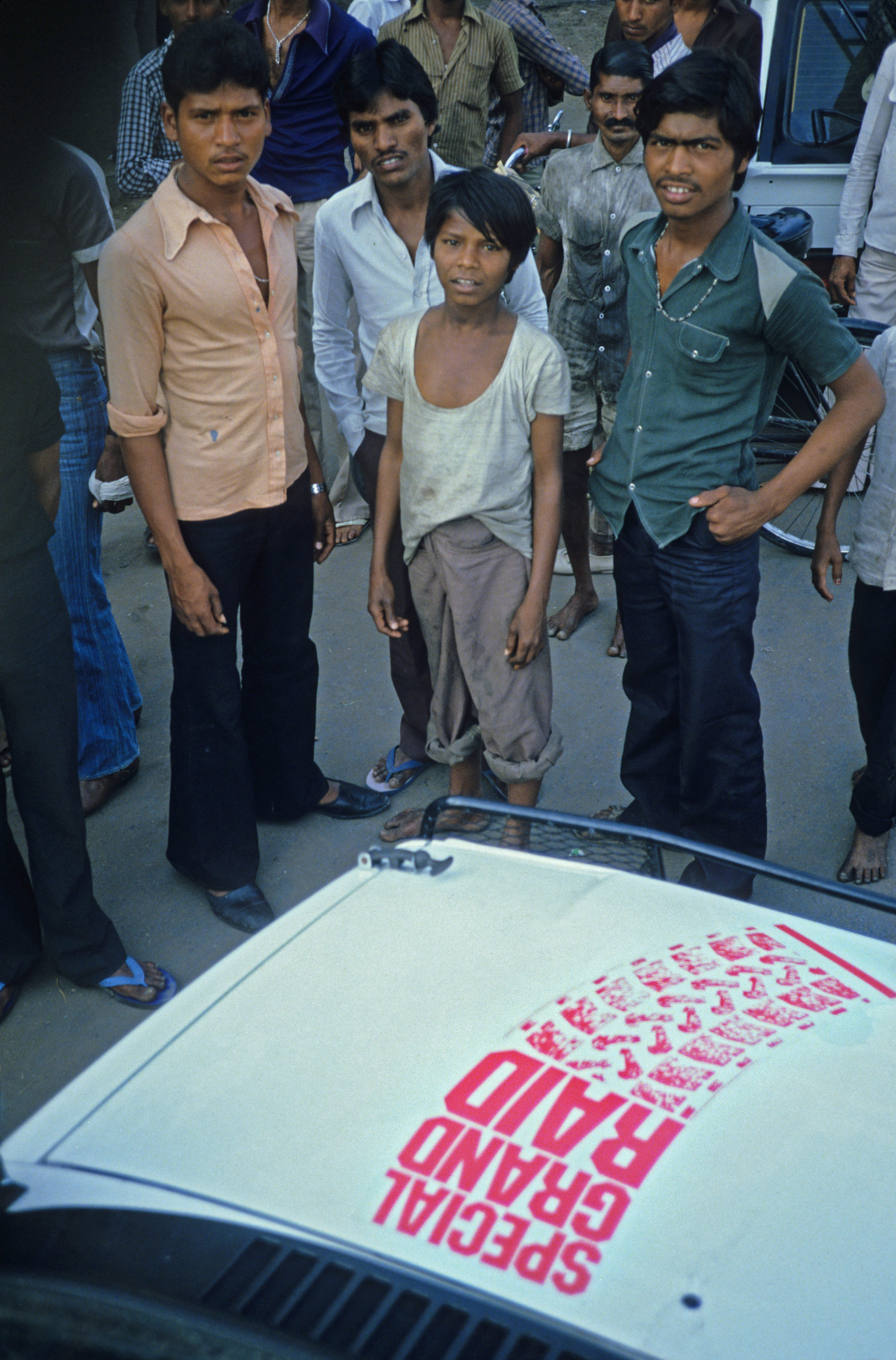 A six heures, les faubourgs de Bombay s’estompent dans un mélange blanchâtre de fumées et de brume. Ce que nous découvrons est à peine croyable : sur des kilomètres de longueur, des hommes et des garçons sont accroupis de chaque côté de la route, au-dessus des caniveaux, pour y faire leurs besoins, un récipient d’eau à la main en guise de papier, formant dans un alignement presque militaire la plus insolite des haies d’honneur que le Raid aura connues !