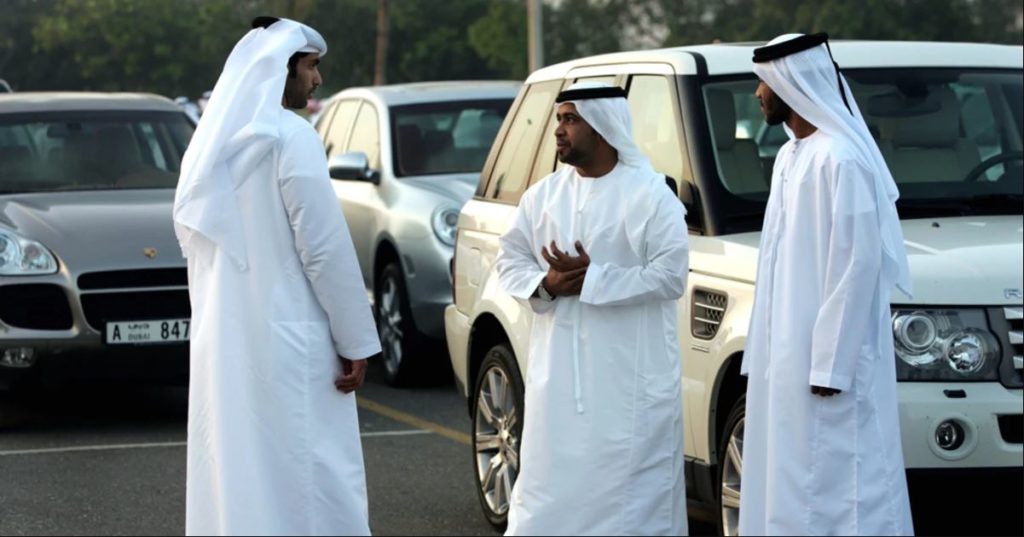 Tout est en place, tout correspond à ce que nous avions lu, vu et entendu. Des hommes du désert à qui la crise a profité. Symbole de cette explosion économique : la voiture. jamais assez belle, jamais assez grande, jamais assez luxueuse. Aujourd’hui, le pôle d’attraction se situe au cœur du gigantesque hôtel Sheraton, où l’on inaugure une exposi­tion automobile.