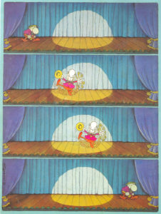 Assis sur le capot de la Citroën de Radio-Canada, derrière ma moustache d’ado, j’affiche le sourire et l’air détendu qu’on me demande mais sous la façade, j’ai une trouille bleue. Je me sens comme un canard, calme en apparence mais pédalant frénétiquement sous la surface. Tôt ou tard, je vais être démasqué, c’est sûr… Et qu’arrivera-t-il quand on se rendra compte que je ne suis pas Superman? Juste « un gars ben ordinaire » comme le chante l’autre Robert (Charlebois)?