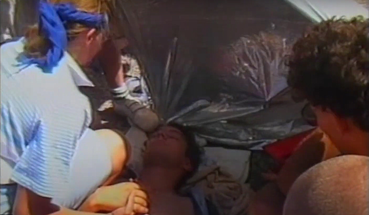 Alors que nous approchons, j’aperçois quelqu’un allongé par terre…